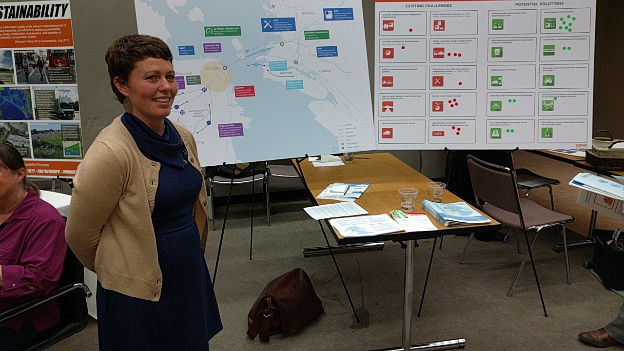 Among them was Liz Brisson, Project Manager, Urban Planning Initiatives Sustainable Street Division for the SFMTA. She was answering questions at the “Core Capacity Transit Study” station, a study project she’s working on. “Transit is bursting at the seams,” she said, adding that means it’s essentially working. But it has to work better to accommodate growth. “We know what we have to do.”