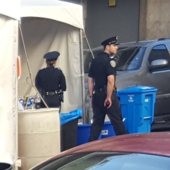 The three officers literally turned their backs on us and walked away. My brother continued to snap photos of these cops as they cowered behind some barricades and a tent on Larkin.