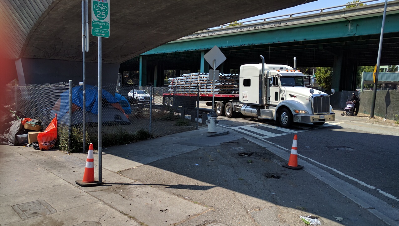Crosby, meanwhile, said he nearly crashed into a homeless man who happened to step out of a tent as he was cycling around it. He agrees: it’s a matter of time before there’s a bad crash. Or an altercation. And just like with car crashes, it won’t be an “accident” when it happens. If city and state agencies would stop playing “homeless whack-a-mole,” as Nelson called it, chasing the homeless from encampment to encampment, this could be prevented. One can also hope people will realize this isn’t a zero-sum game between well-paid techies and the homeless. Crosby could get fed up and decide to get to work another way. Homeless people, on the other hand, depend on bikes–perhaps more than anyone.
