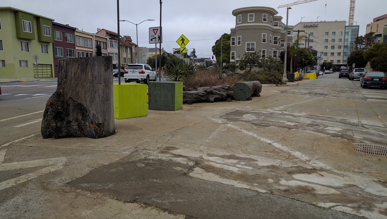 Just yesterday, Streetsblog reported on the horrible crash at Sutter and Market. Whenever there’s a crash that puts a car on a sidewalk or another pedestrian space, wouldn’t it be great if the City responded to it by protecting the space with attractive and robust infrastructure like they did with Guerrero Park? Inexpensive, off-the-shelf materials could be fairly quickly put in place to keep people safe.