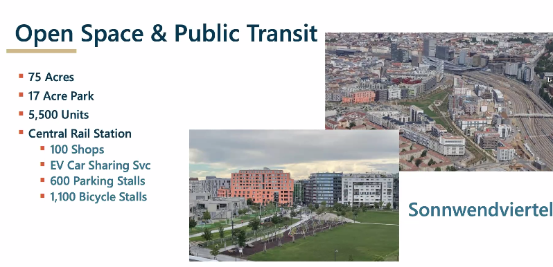 Carol Galante with the Terner Center for Housing Innovation, another of the panelists, said that despite all the social benefits, developers still manage to make a profit. One reason is simple: they don’t have to also build housing for cars. Daniel Adams with the San Francisco Mayor’s Office said there was a lot to learn from Vienna–for example, the Viennese practice of putting in transit first when planning brand new communities. “I think that’s potent for us to think through,” he said.