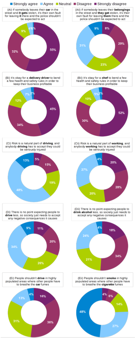 - “There is no point expecting people to [drive/drink alcohol] less, so society just needs to accept any negative consequences it causes.”