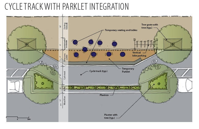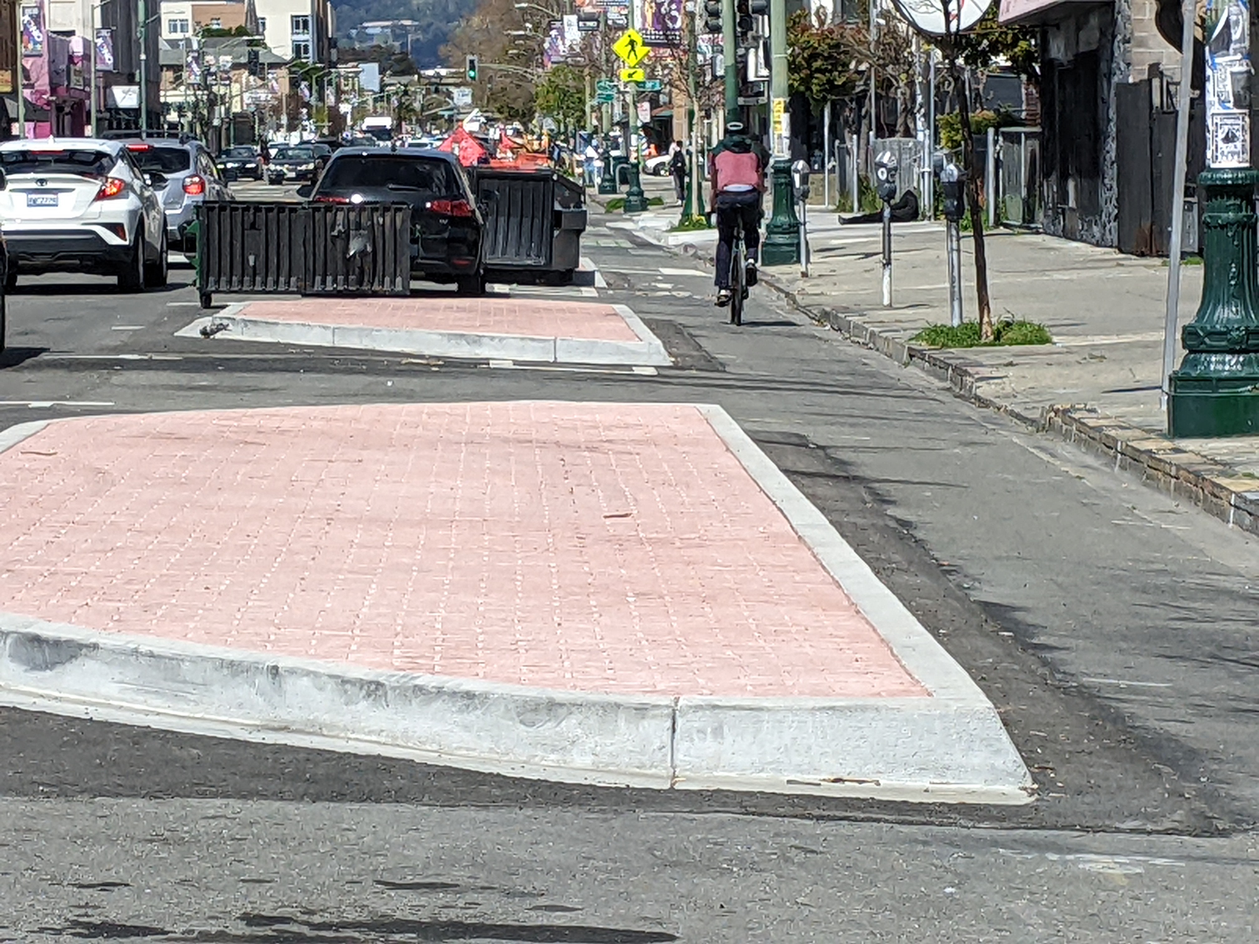 “Oakland figured this out ten years ago in their original Telegraph Complete Streets plan,” he wrote to Streetsblog about parklets and protected bike lanes.