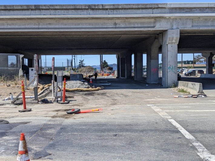 There’s another video on the site for the $43.37 million project that shows the direct route for pedestrians and cyclists under the freeway, which will remain (it’s basically the route in the picture above). Judging from the video, that will still be an unpleasant way to go, so the overpass is welcome. Streetsblog just wishes Caltrans and the Alameda CTC would focus on improving things for cyclists and pedestrians without it always being attached to some giant ramp complex widening. After a half century of essentially building everything for cars, maybe throw some serious love at other modes for a change without it almost always being part of a package for cars.