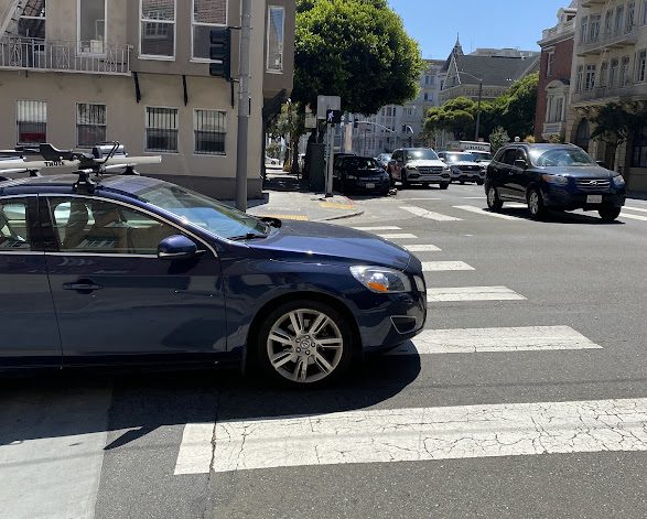 However, as Delp–and of course SFMTA–point out, not all the news is bad. From SFMTA’s post on the data: The initial results offer some signs of progress, including a reduction in “‘close calls’ between people driving and people walking in crosswalks, compared to three such incidents before” they installed soft-hit posts and ‘turn wedges’ as pictured below: