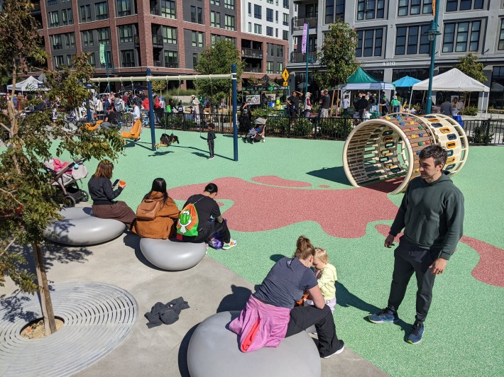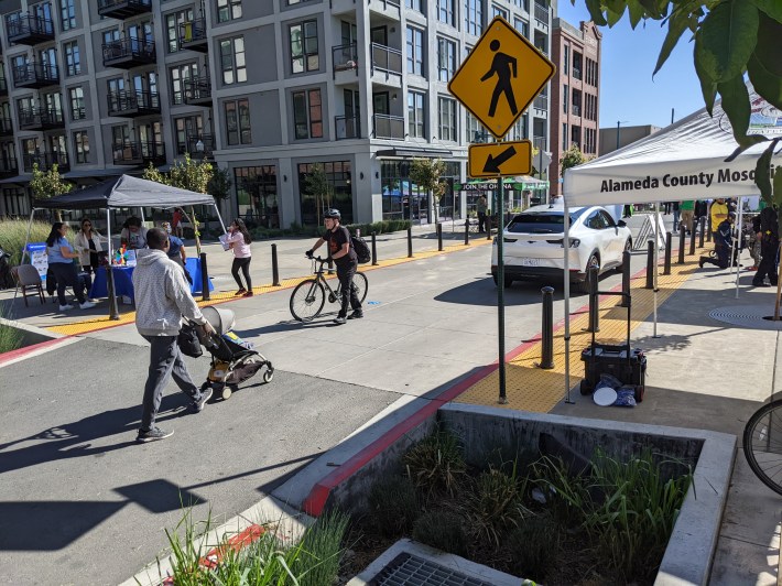 “There are very low traffic levels,” said Emeryville Vice Mayor Courtney Welch, who added that it’s important for children to grow up in communities where they can have some independence. She said she feels safe letting her kids navigate this community on their own thanks to the low traffic volumes. “It builds confidence.”