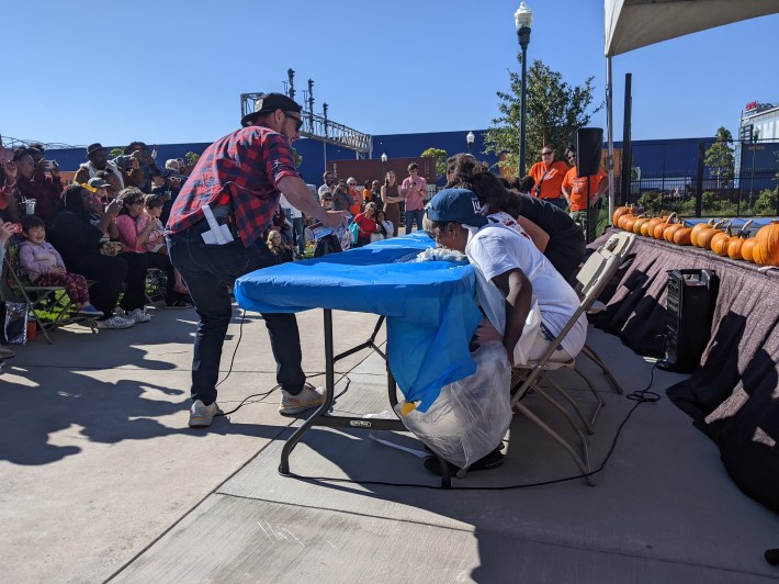 The park is in view from the windows of the apartments, so parents can keep an eye on their kids. And it was clear Saturday that kids are what it’s all about, with potato sack races, pick-up soccer, and a pie-eating contest that was part of the dedication ceremony.