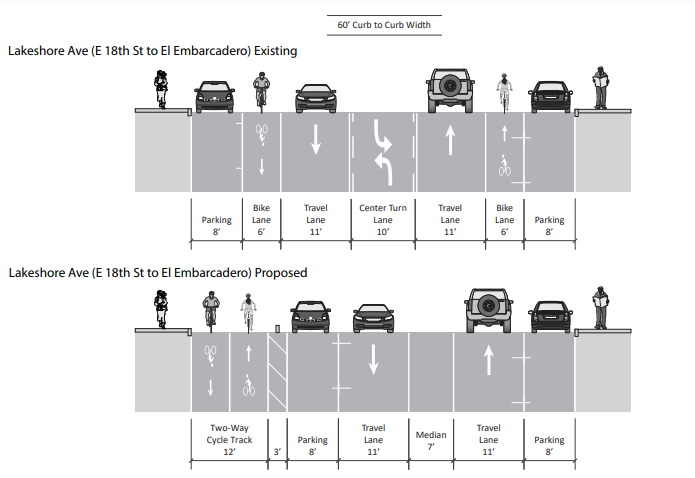Oakland DOT Releases Lakeshore Ave. Protected Bike Lane Plans