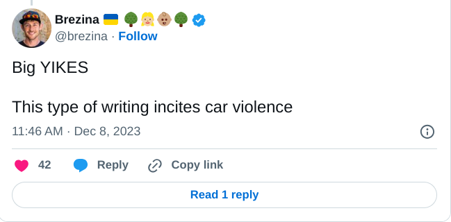 Editors note: I emailed Kane to ask for the reasoning behind the paragraph in question. They invited me to go on a bike ride but otherwise declined to answer.