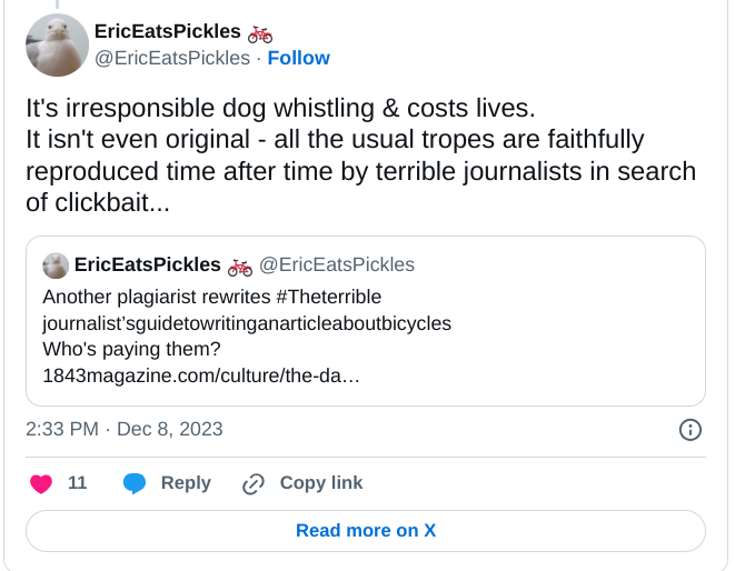 People hate bike lanes, at least in part, because people hate cyclists. And in fairness, many cyclists give non-cyclists more than a few things to hate. They pedal against traffic. They blow red lights. They wear expensive-looking Lycra jerseys that feel like flashy overkill on city streets. The stereotype skews toward six-figure-earning, middle-aged neckbeards mansplaining about derailleurs. And there’s that eternal whiff of superiority embodied by those “One Less Car” signs sometimes taped to the backs of bike seats, which manage to pack eco-smugness and a grammatical error into three syllables. It should read, “One Fewer Car,” if you want to be like that.