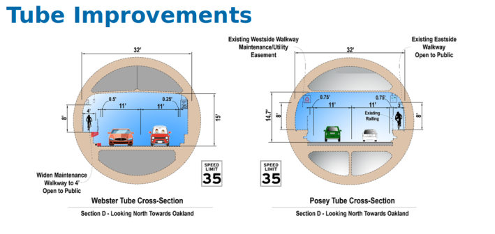 The re-framed interchange project was sold by Caltrans and the Alameda County Transportation Commission (CTC) as a way to reduce some of the “barrier effect” of the freeway between downtown Oakland and JLS. But it will do nothing of the sort. The real goal is and always was to turn the Posey Tube into a freeway ramp.
