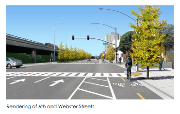 That’s behind why the Jack London Business Improvement District’s Savlan Hauser reached out to Streetsblog and others to express her frustration with the team running the project. In an email, she accused the Alameda CTC staff and the Parsons Engineering design team of giving “pitiful responses to many of our joint Jack London/Chinatown/Bike & Ped concerns about the 150+ million dollar project that is supposed to be an improvement in multimodal / neighborhood connectivity between Alameda and Oakland and us, its downtown neighborhoods.”