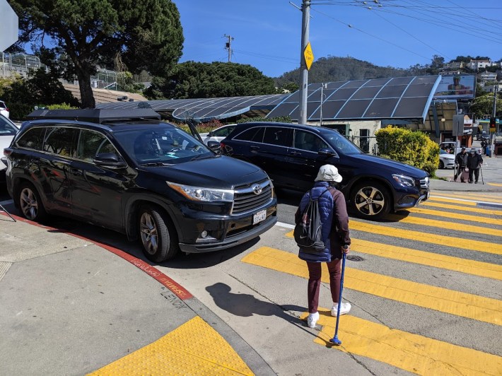 Moreover, if this city really cared about its transit-first commitments—which is directly connected to Vision Zero—it would be impossible to drive through West Portal on Ulloa to start with. The current configuration takes traffic through the rail junction at the entrance to the Twin Peaks tunnel, delaying trains and creating mayhem for all the transit riders using the station.