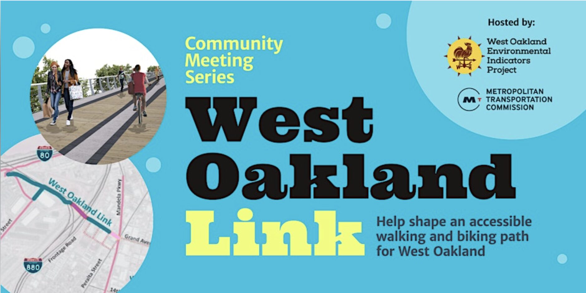 - Tuesday West Oakland Link Public Meeting. Join the West Oakland Environmental Indicators Project and the Metropolitan Transportation Commission to learn about a plan to connect the Bay Skyway/Bay Bridge Trail with West Oakland and the Port with bike and walking paths. Tuesday, April 9 6-7:30 p.m., register for Zoom link.