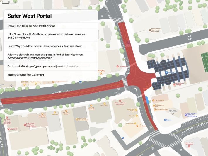 SFMTA started soliciting comment this week on plans to reconfigure the intersection of Ulloa Street and West Portal Avenue, where car traffic, trains, buses, and pedestrians currently mix. The first of three in-person outreach meetings was held Monday. There is also an online survey. The plan is to start work on the project this summer.