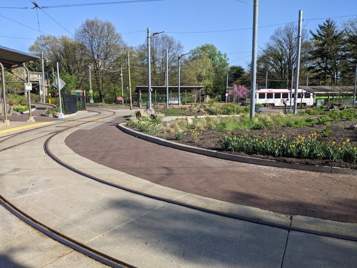 I was visiting Philadelphia, sitting in the park by that city’s “West Portal” for the train tunnel that connects downtown (or “Center City” as they call it) with the western suburbs. Fortieth Street Portal station used to look more like West Portal in San Francisco, but Philadelphia closed the area to traffic back in 1983 (the Trolley Portal Gardens were added in 2018).