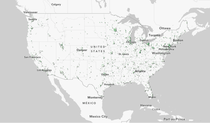 If DEKRA’s data seems a little sketchy, consider that US DOT produced its own U.S.-specific version of this map a few years ago, documenting hundreds of communities with more than 5,000 residents that had reported at least one year of Vision Zero success between 2017 and 2021.