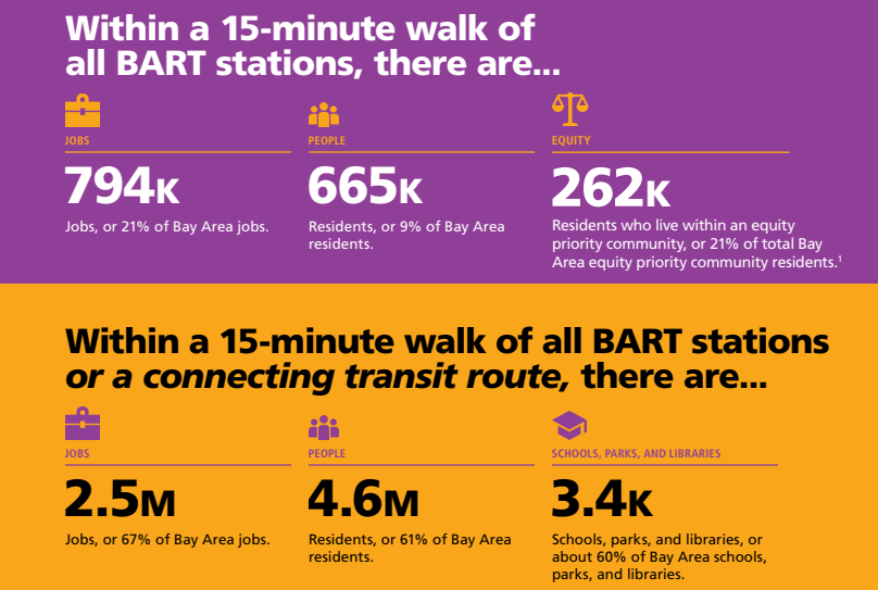 It’s essential that BART remain well funded to serve present and future needs. Young people still use BART, as do people too poor to own a car. “Young adults want to use and live near transit. Gen Z prefers to live in urban settings accessible to transit, while driving less often. In a 2023 survey, over 40 percent of Gen Z and Millennial potential homeowners listed having transit nearby as a very important factor in deciding where to live,” continues the study. “In addition, a 2021 survey on San Francisco commute patterns shows young adults aged 18 to 34 are more likely than those aged 35 or older to use transit for their trips.”