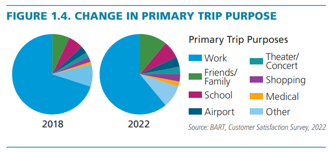 “Work trips are now 61 percent of BART trips compared to 70 percent