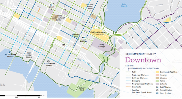 "Regardless of what happens with the Downtown Specific Plan language, the bike plan still includes recommendations for protected facilities on Market, MLK, and 3rd Street," wrote Bike East Bay's Robert Prinz in an email to Streetsblog.