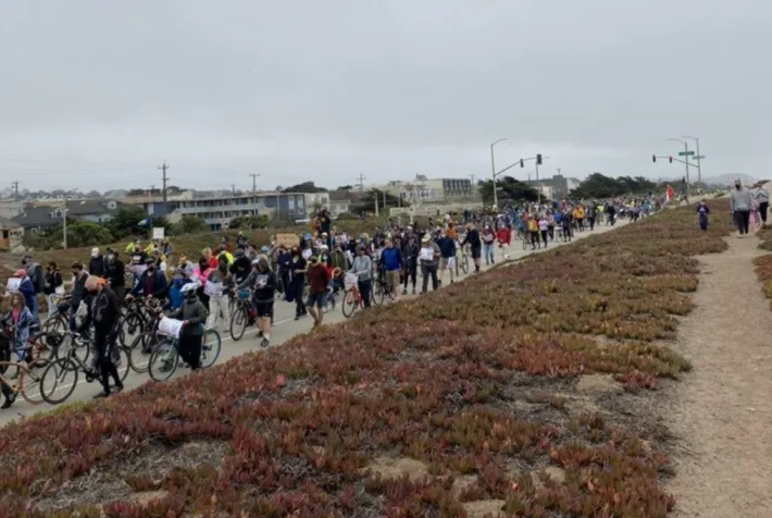 “I believe in the power of open spaces and shifting people out of cars and into the community,” said Al Hawley, another advocate who participated in the ride to the rally. “I love Ocean Beach,” said Maya Chaffee, adding that with the highway closed the city can activate the space with tables and chairs and art, much as they did with the J.F.K. Promenade in Golden Gate Park. Andres Mora, who also joined the ride to the Great Highway, sees the important safety aspect of converting it into a park during the week: he commutes by e-bike to downtown San Francisco from Pacifica. “I’ve had some very, very close calls on the Great Highway,” he said.