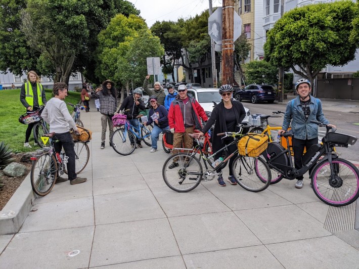 The group that rode in from Duboce Park got to sample a bit of what the Great Highway can become, riding on the now-transformed J.F.K Promenade, past exactly the kind of artwork and tables and chairs Chaffee cited. Indeed, where once there was whizzing traffic, families were out playing and enjoying the crisp misty air in Golden Gate Park.