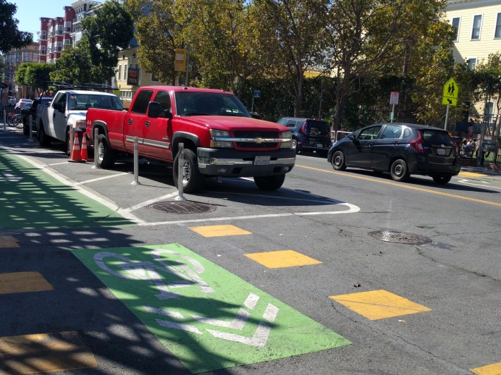 MM: San Francisco must move away from soft-hit-post-and-paint-only daylighting. That’s just inadequate for driver behavior. One of the most successful materials New York has used for maintaining daylighting are rocks—huge pieces of rock. The best city planning is low tech, in this case putting in rock slabs and planters that drivers literally can’t drive over.