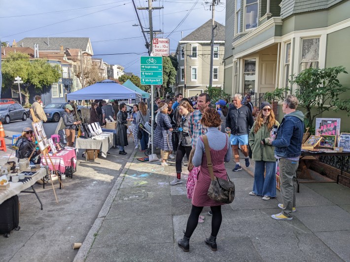 Connections, exchanges of products and information, and a sense of community is what city streets were about traditionally. Look at any historic photos of the streets in San Francisco or any other city and people are interacting, selling things, etc. It wasn’t until the age of the automobile that streets became unavailable for anything other than transportation. This shift back to their earlier uses is opening up lots of possibilities.