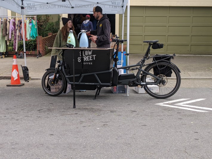 Now Zayouna roasts coffee in Berkeley and bikes (and BARTs) around to different slow streets events to sell his brew. Streetsblog caught up with him at a recent open streets event on Slow Page.