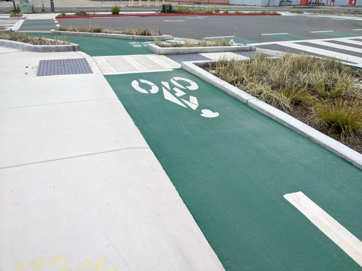 That’s in addition to the curb that separates the bike lane from car-traffic. The developers also didn’t scrimp on making things pretty: