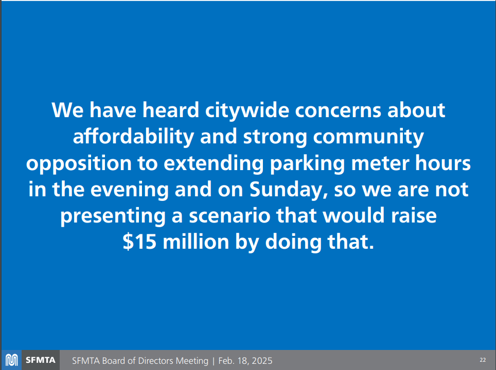 Smith pointed Streetsblog towards a page in a planned presentation to the SFMTA board at its next meeting Tuesday, February 18, written by Bree Mawhorter, the agency’s Chief Financial Officer: