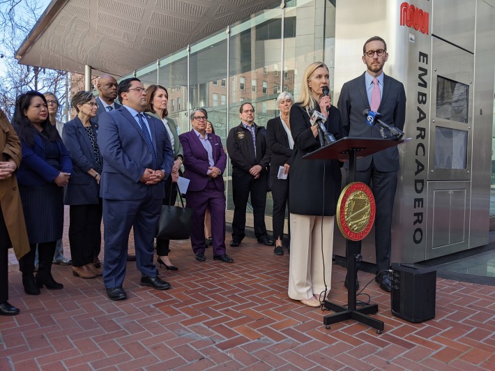 That’s the kind of doomsday scenario Senators Scott Wiener (D-San Francisco) and Jesse Arreguín (D-Berkeley) hope to avert with Senate Bill 63, “the Connect Bay Area Act,” introduced Monday morning at an event on the sidewalk above Embarcadero station. If it becomes law, the bill will put a transit-funding sales tax of at least 1/2 cent on the November 2026 ballot.