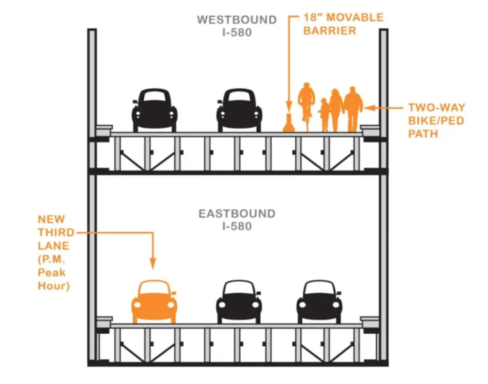 While the statement seemed to declare victory, other advocates close to the fight were less sanguine. One opined this is simply Caltrans realizing they didn’t really have a case for closing the lane, so they’re trying to prepare a better “compromise” to present to the Bay Conservation and Development Commission, which will decide the lane’s future. Caltrans, as usual, wants all six-lanes on the bridge for automobiles (their presentation was previously planned for Thursday, April 3).