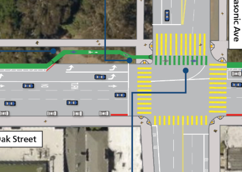 “The number one concern I heard from members and advocates on this project was crossing Masonic at Oak–this design creates full signal separation for people walking and biking which protects them from people in cars turning left, and adequately addresses that concern,” opined Clyde.