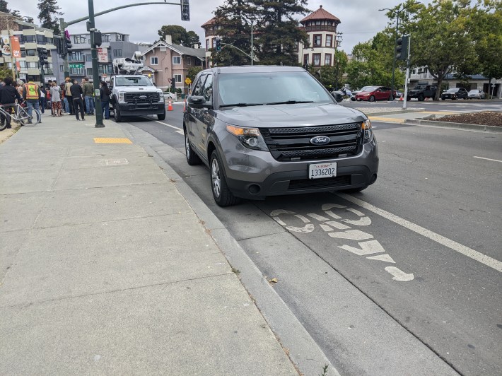 Of course, the city still has a long way to go. A larger project to ring the lake with protected bike lanes is still off in the future. As to Mayor Lee, it would be remiss not to mention that while she was telling the crowd it is paramount to keep people on bikes safe, her own car was parked in the bike lane.