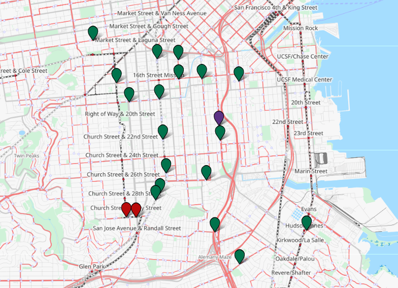 This time, the scope of installation covered multiple neighborhoods including Bayview-Hunters Point, Lower Haight, The Mission, and Potrero Hill. Bench parts were cut and painted on Saturday, then assembled, transported via bike, and installed on Sunday.
