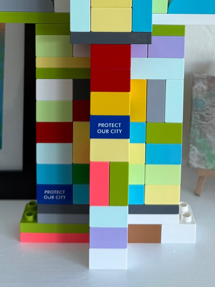 At the vigil, Ming also talked about how two nights before the tragedy, his son built a model out of Lego which included the words "Protect our City." Ming interprets that as a plea for street safety in Burlingame.