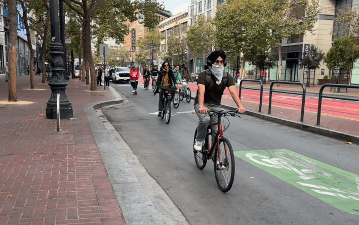Advocates will take action to demand that Mayor Lurie reverse this decision and keep Market car-free. Carrying signs and banners for “Market Street for the People”, pedestrians and transit riders will continually cross around the Market and Montgomery Street intersection while bicyclists ride up and down Market Street nearby.