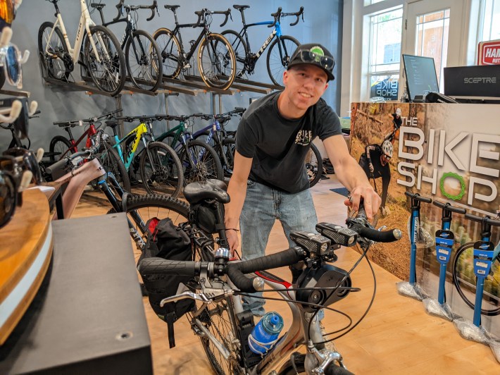 “People come off the train with flat tires and we’re the first business they see,” said Noah Casabella, a mechanic in “The Bike Shop,” a local, uh, bike shop. He said they’ve been backed up for weeks since the new station opened.