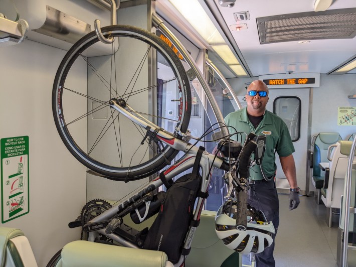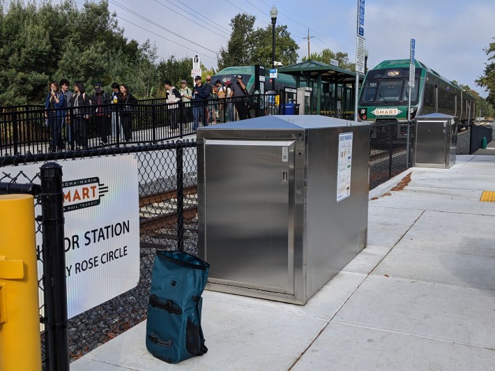 And SMART, as well as the city of Windsor, are making a concerted effort to solve last-mile problems by being as bike-friendly as possible. There are bike racks on each train car on SMART, secure bike lockers and racks at the stations, and bike racks throughout the town.