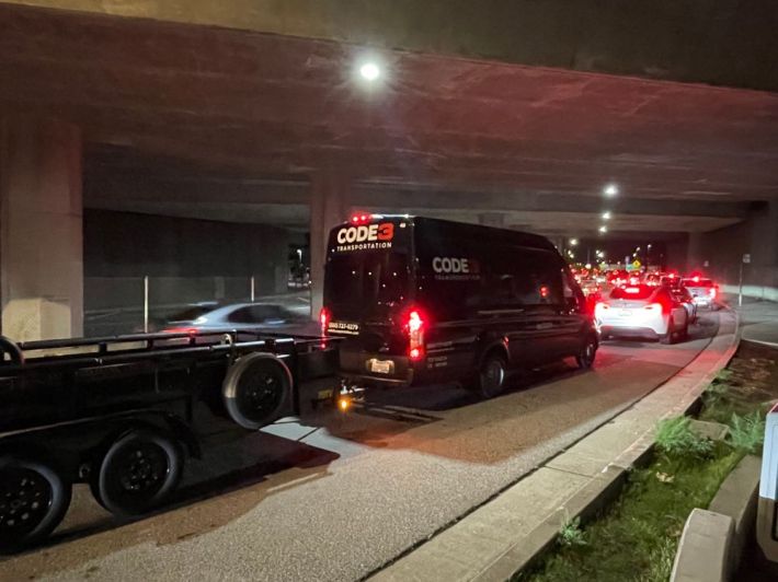 Prinz wrote a thread about his experience handing out fliers and observing the shuttle on Monday morning. "The shuttle headways were estimated at 20-25 minutes apart. But this morning it’s definitely taking much longer than that. It was 20-25 mins alone for the last shuttle to get even just 0.4 mi from the stop to the freeway. The entire bridge crossing by bike was previously about 30 mins," he wrote in his thread.