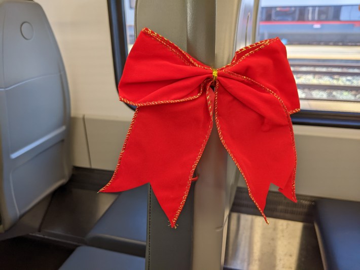 And to celebrate, Caltrain unveiled its first-ever electrified holiday train in a sneak peek on Friday afternoon at its 4th and King Station. "Caltrain’s annual Holiday Train has been reinvented as a new on-board experience," wrote the agency in a statement. Caltrain has run its holiday train since 2002, previously with its old diesel equipment.