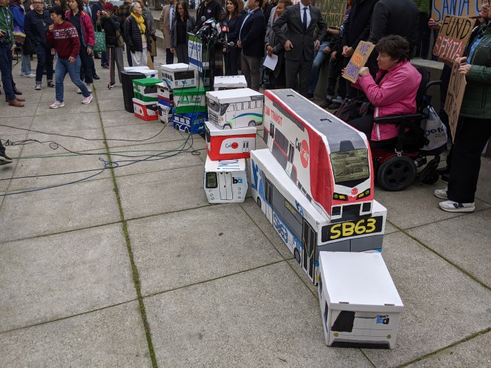 "We're going to go to the mat to get this funding," said Senator Scott Wiener (D-San Francisco) to some 100 advocates, lawmakers, and union members at a rally on the Embarcadero Plaza Friday morning. "With a federal government increasingly showing hostility towards public transit, we need to step forward."