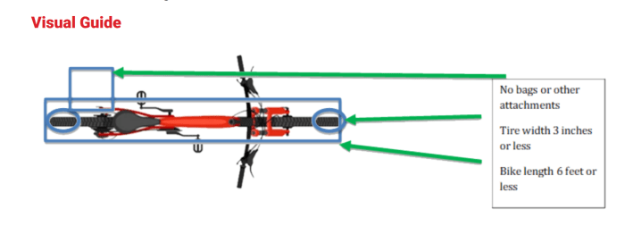 • Extra‑long frames or wheelbases (a bike cannot be longer than 6 feet)