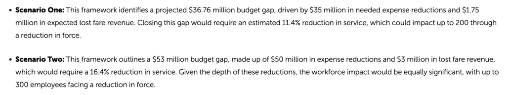 AC Transit hasn’t yet announced which bus routes might be cut, but it could be forced to reduce service by up to 16.4% and lay off 300 employees.
